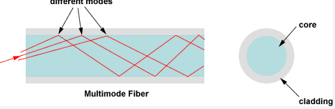 Guided Modes: MMF supports multiple transverse modes of light propagation, with each mode traveling at a different speed and along distinct paths within the fiber. The interaction between these modes can lead to signal attenuation and distortion, limiting the transmission distance of MMF.
